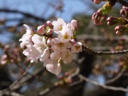 桜の名所としても知られる大宮公園(さいたま市大宮区高鼻町4)で3月22日、桜の基準木2本に5~6輪の花が咲き、同園事務所は10時に開花宣言を行いました。
